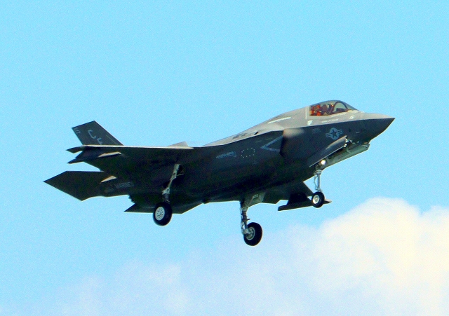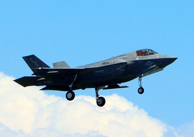 米海兵隊 F-35B ライトニングⅡ 戦闘機(岩国基地)、CE、15番機が着陸 |