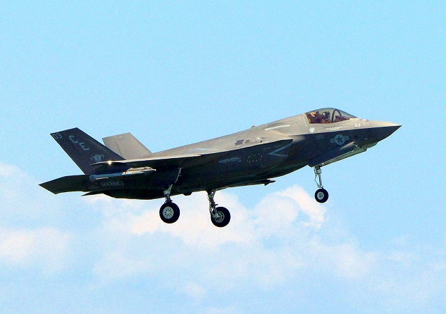 米海兵隊 F-35B ライトニングⅡ 戦闘機(岩国基地)、CE、03番機が着陸 |