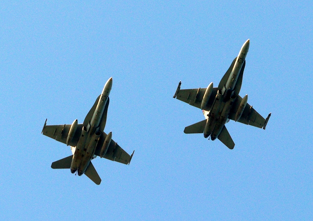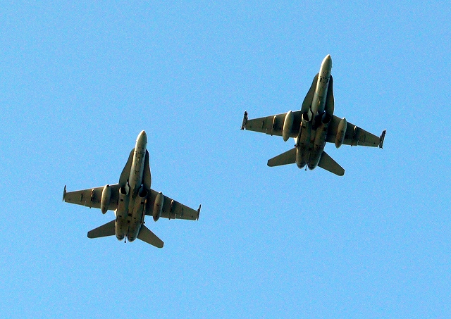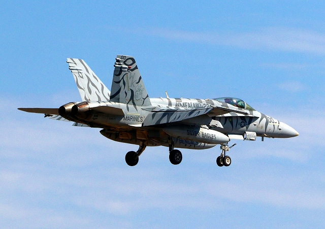 米海兵隊 F/A-18D/C ホーネット 戦闘攻撃機(岩国基地)、WT、25番機、WK、02番機が2機編隊で帰還 |