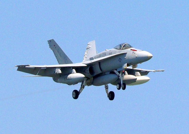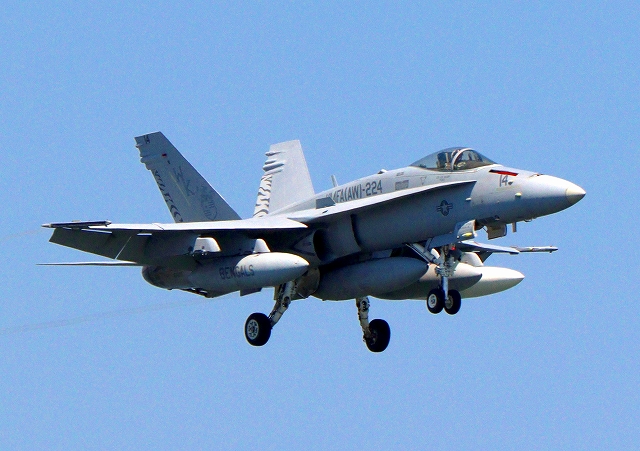 米海兵隊 F/A-18C ホーネット 戦闘攻撃機(岩国基地)、WK、14番機が帰還