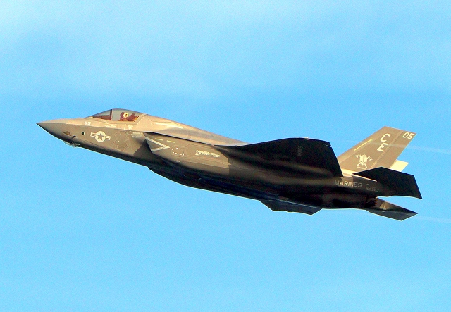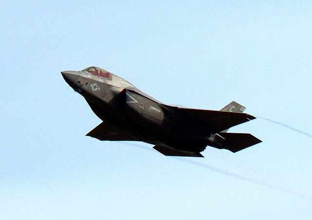 米海兵隊 F-35B ライトニングⅡ 戦闘機(岩国基地)、CE、05番機が離陸 |