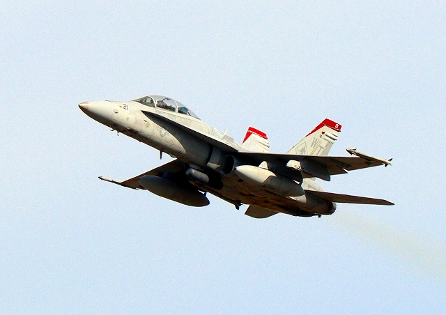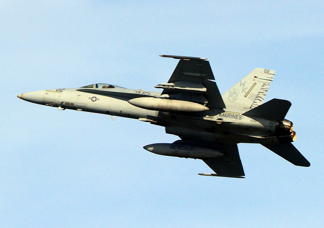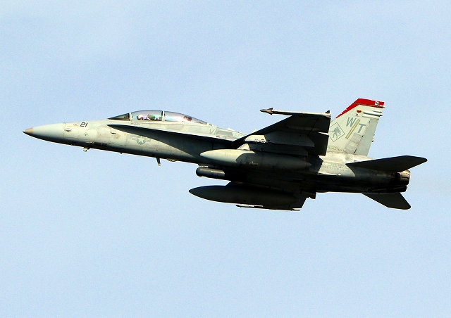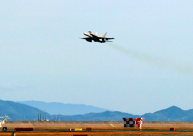 米海兵隊 F/A-18D ホーネット 戦闘攻撃機(岩国基地)、WT、21番機が離陸