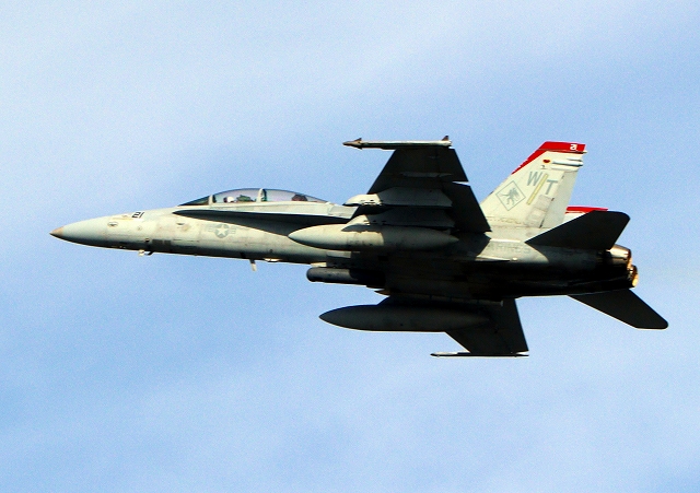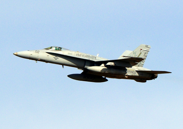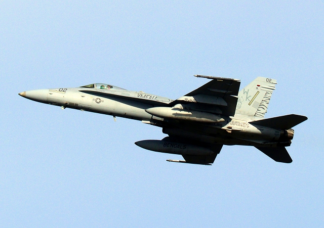 米海兵隊 F/A-18C ホーネット 戦闘攻撃機(岩国基地)、WK、02番機(VMFA AW 224)が離陸 |