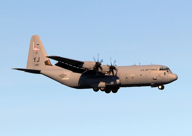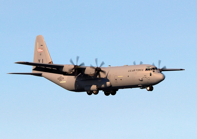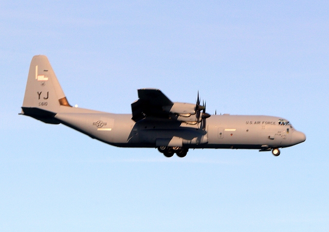 米空軍 C-130J 戦術輸送機 ハーキュリーズ(横田基地)、YJ、610番機が着陸 |