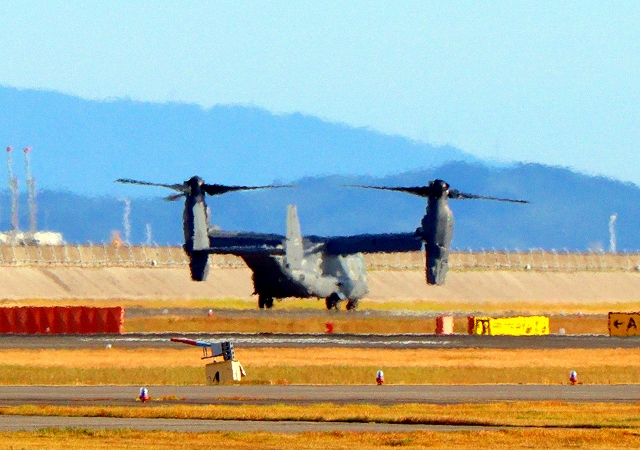 米空軍 CV-22B オスプレイ(横田基地)、USAF 0065番機が出てきました。今から離陸するのか? |