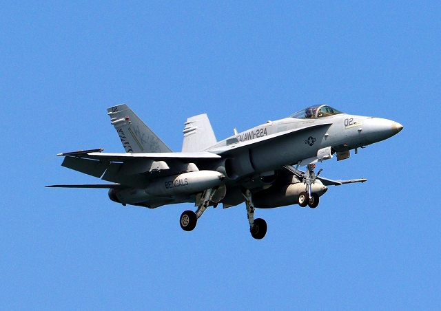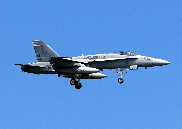 米海兵隊 F/A-18C ホーネット 戦闘攻撃機(岩国基地)、WK、02番機(VMFA AW 224)が着陸 |