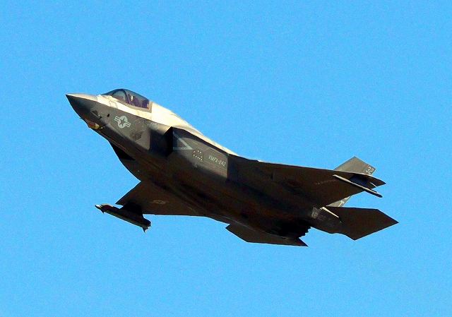 米海兵隊 F-35B ライトニングⅡ 戦闘機(岩国基地)、DT、32番機が離陸 |