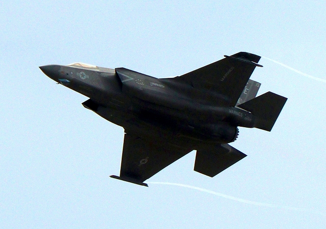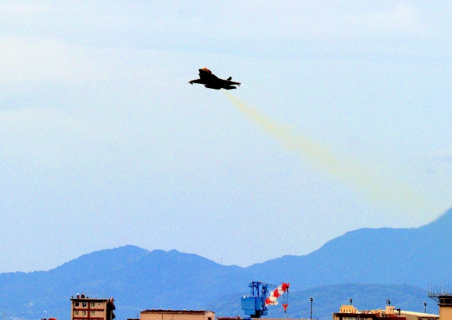 米海兵隊 F-35B ライトニングⅡ 戦闘機(岩国基地)、CE、15番機が離陸 |