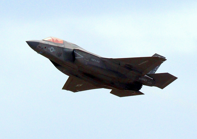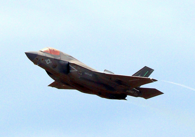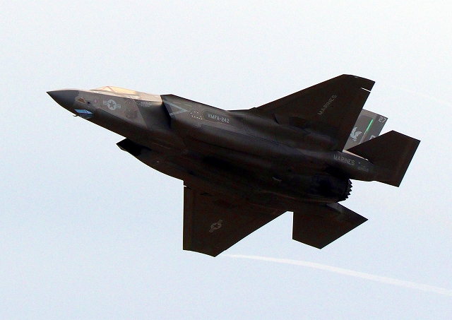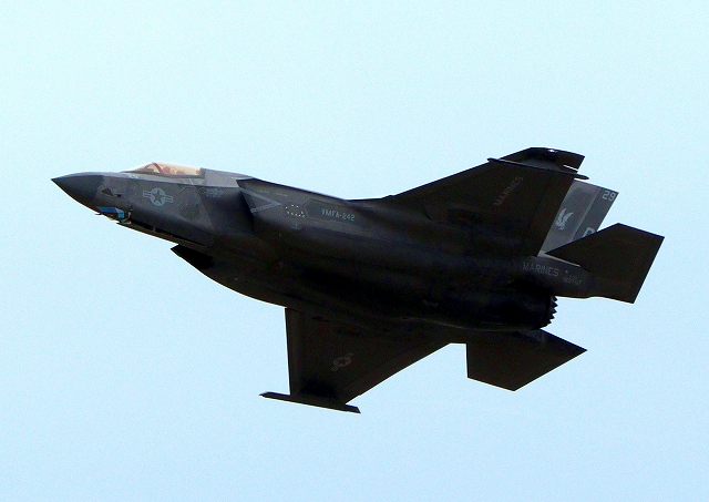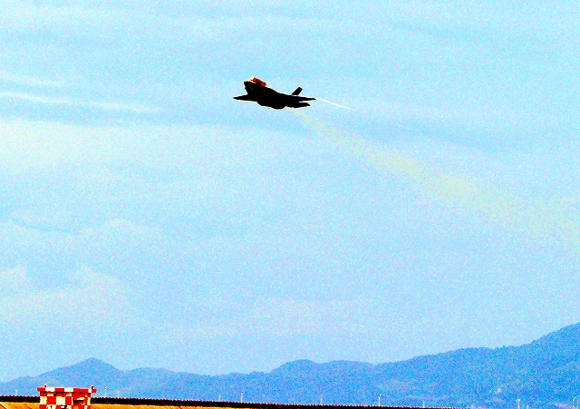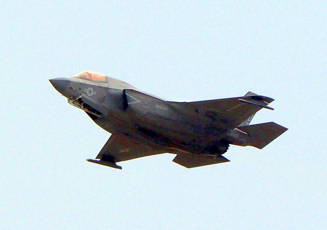 米海兵隊 F-35B ライトニングⅡ 戦闘機(岩国基地)、DT、27番機が離陸 |