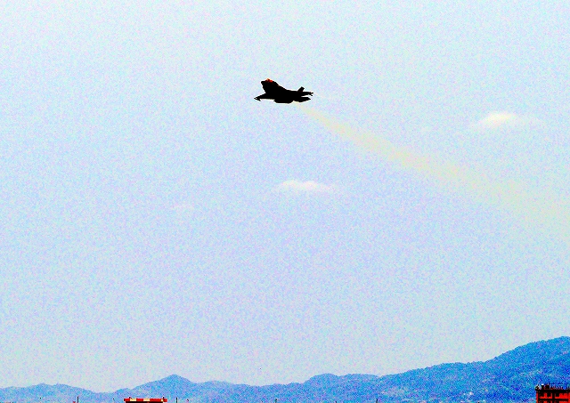 米海兵隊 F-35B ライトニングⅡ 戦闘機(岩国基地)、CE、225番機が離陸 |