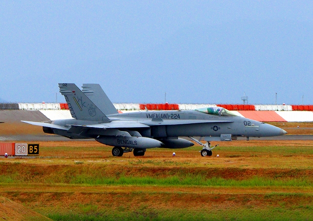 米海兵隊 F/A-18C ホーネット 戦闘攻撃機(岩国基地)、WK、02番機が着陸