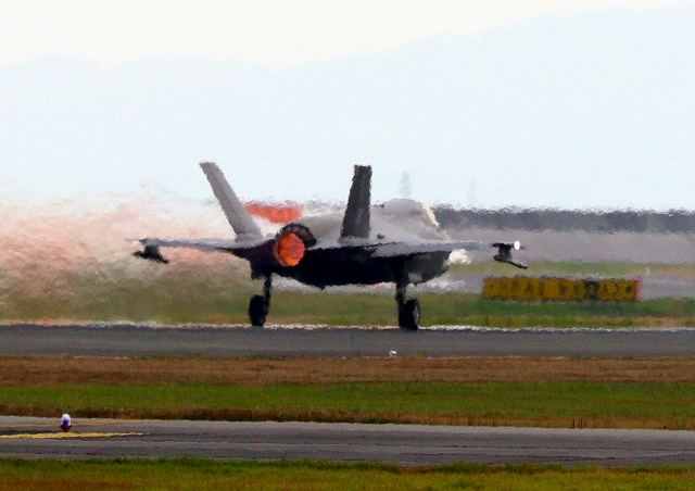 米海兵隊 F-35B ライトニングⅡ 戦闘機(岩国基地)、CE、01番機が離陸 |