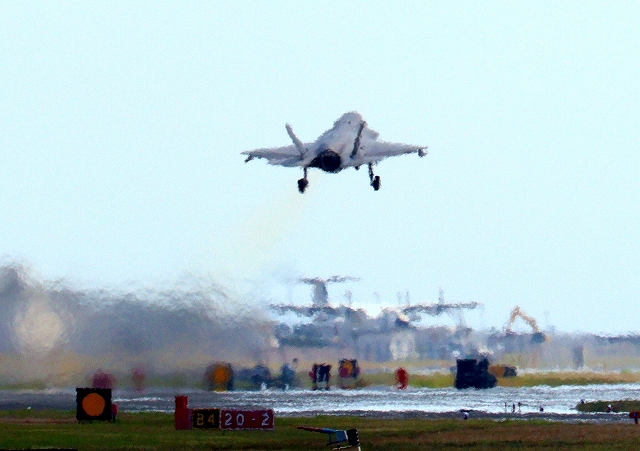 米海兵隊 F-35B ライトニングⅡ 戦闘機(岩国基地)、CE、10番機が離陸 |