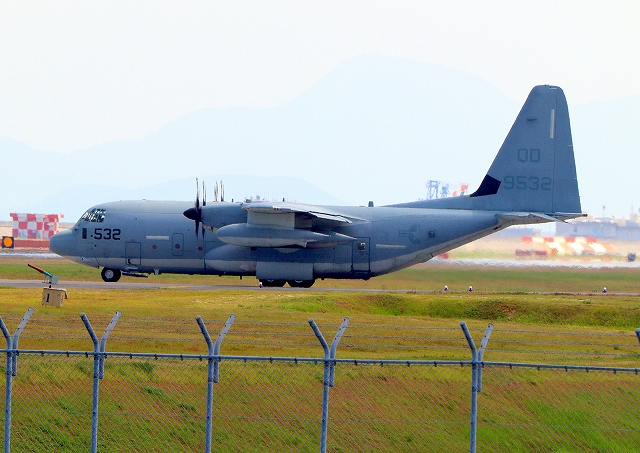 米海兵隊 KC-130J 空中給油機 スーパーハーキュリーズ(岩国基地)、QD 9532番機 |
