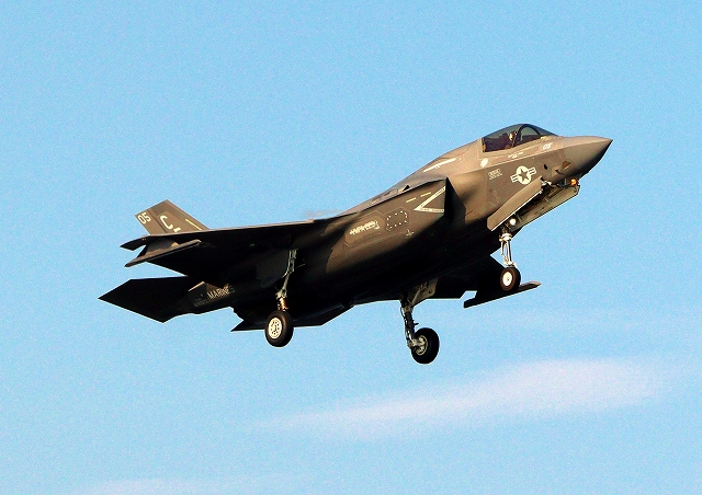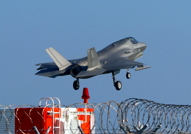 米海兵隊 F-35B ライトニングⅡ 戦闘機(岩国基地)、CE、15番機が着陸