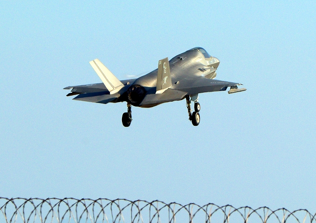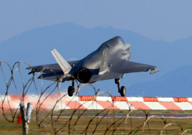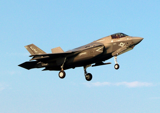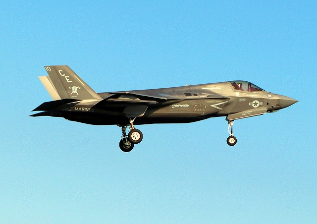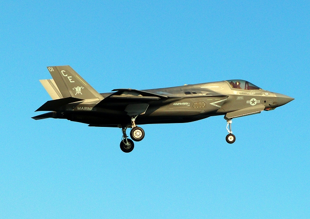 米海兵隊 F-35B ライトニングⅡ 戦闘機(岩国基地)、CE、01番機が着陸