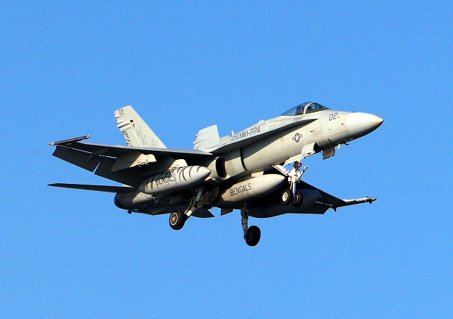 米海兵隊 F/A-18C ホーネット 戦闘攻撃機(岩国基地)、WK、02番機(1)が着陸