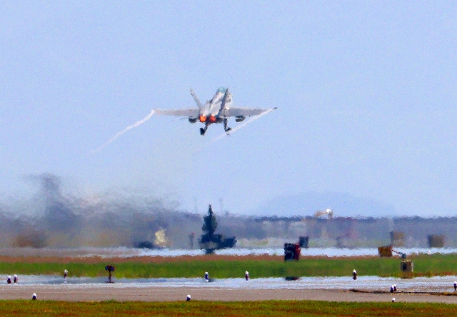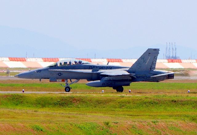 米海兵隊 F/A-18D ホーネット 戦闘攻撃機(岩国基地)、WK、09番機が離陸 |