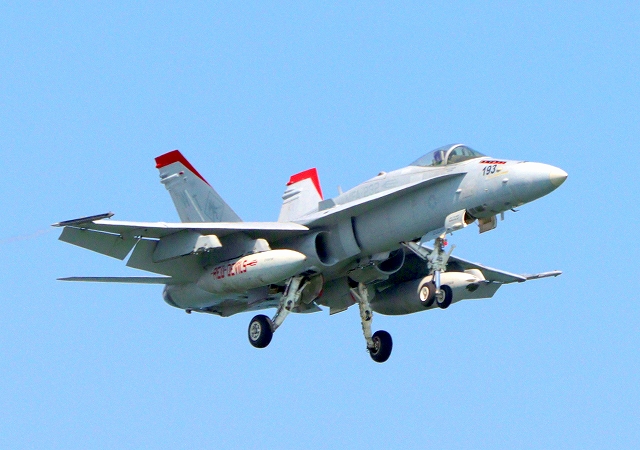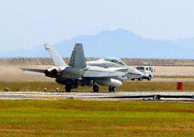 米海兵隊 F/A-18C ホーネット 戦闘攻撃機(岩国基地)、WK、193番機が着陸 |