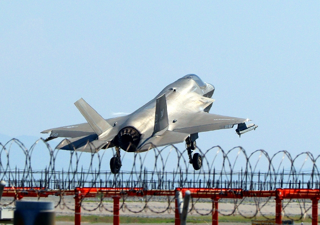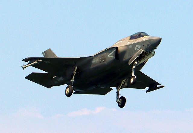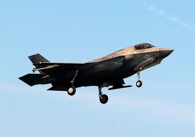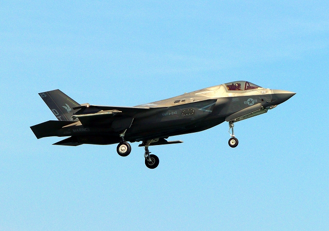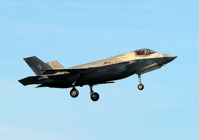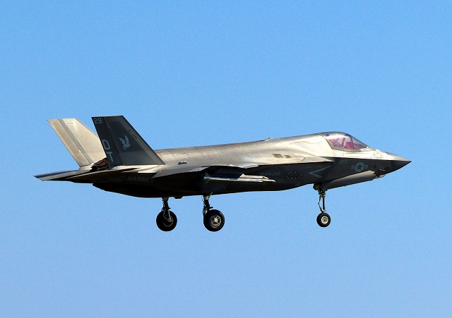 米海兵隊 F-35B ライトニングⅡ 戦闘機(岩国基地)、DT、28番機が着陸 |
