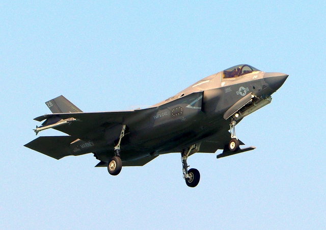 米海兵隊 F-35B ライトニングⅡ 戦闘機(岩国基地)、DT、25番機が着陸 |