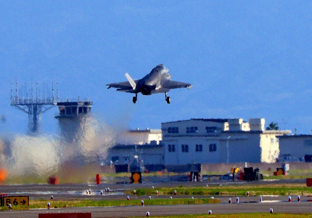 米海兵隊 F-35B ライトニングⅡ 戦闘機(岩国基地)、CE、05番機が離陸 |