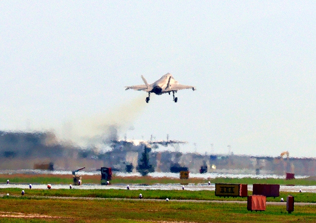 米海兵隊 F-35B ライトニングⅡ 戦闘機(岩国基地)、DT、32番機が離陸 |