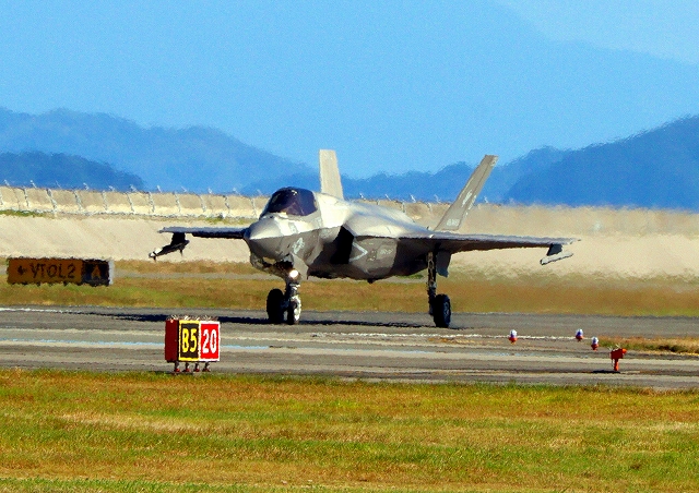 米海兵隊 F-35B ライトニングⅡ 戦闘機(岩国基地)、VK、07番機が離陸 |