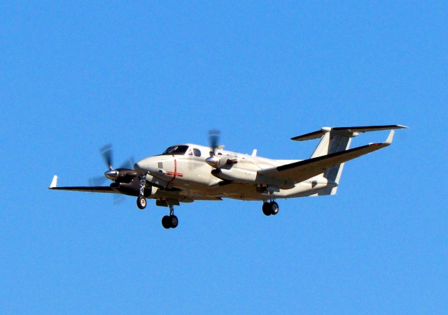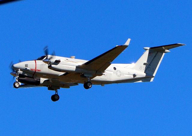 米海兵隊 UC-12W ヒューロン 軽輸送機(岩国基地)、8209番機が旋回 |