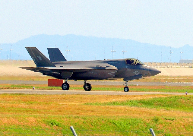 米海兵隊 F-35B ライトニングⅡ 戦闘機(岩国基地)、DT、31番機が着陸 |
