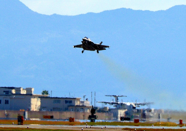 米海兵隊 F-35B ライトニングⅡ 戦闘機(岩国基地)、DT、21番機が離陸 |