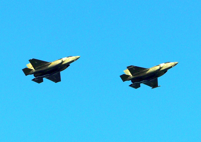 米海兵隊 F-35B ライトニングⅡ 戦闘機(岩国基地)、DT、21番機、元01番機が2機編隊で帰還 |