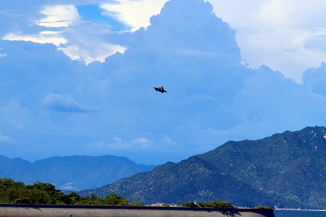 米海兵隊 F-35B ライトニングⅡ 戦闘機(岩国基地)、DT、25番機が宮島、廿日市側上空を通って帰還帰還 |