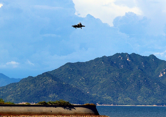 米海兵隊 F-35B ライトニングⅡ 戦闘機(岩国基地)、DT、25番機が宮島、廿日市側上空を通って帰還 |