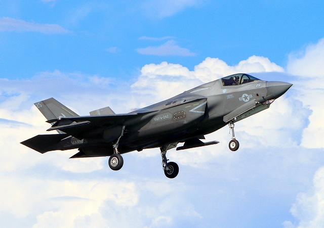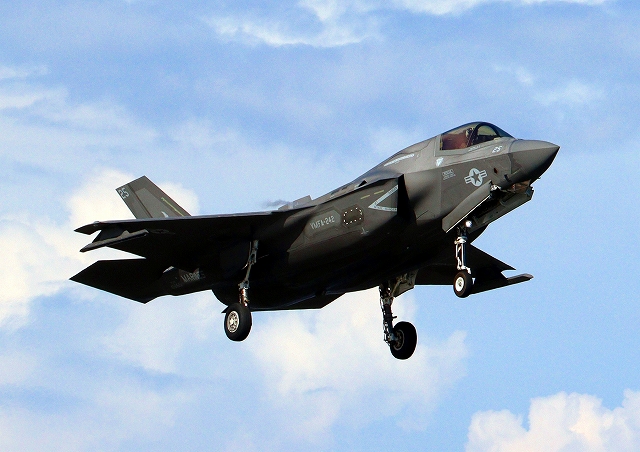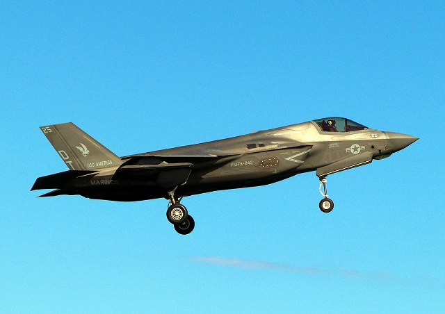 米海兵隊 F-35B ライトニングⅡ 戦闘機(岩国基地)、DT、25番機が着陸
