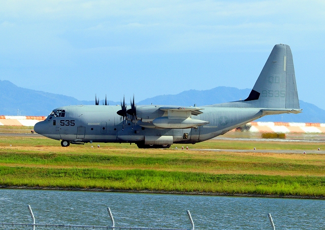 米海兵隊 KC-130J 空中給油機 スーパーハーキュリーズ(岩国基地)、QD 9535番機 |