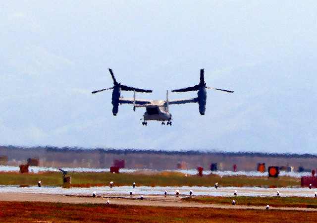 米海兵隊 MV-22B オスプレイ、2機目が離陸 |