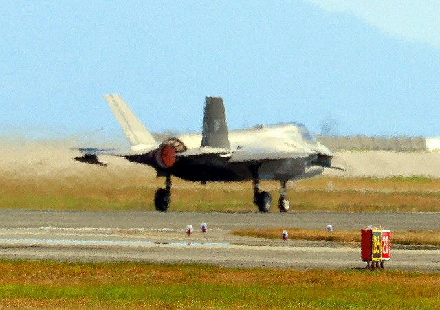米海兵隊 F-35B ライトニングⅡ 戦闘機(岩国基地)、DT、23番機が離陸 |