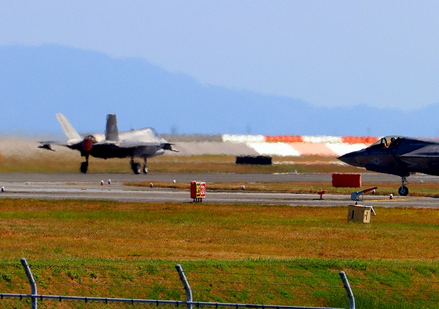 米海兵隊 F-35B ライトニングⅡ 戦闘機(岩国基地)、DT、21番機が離陸 |