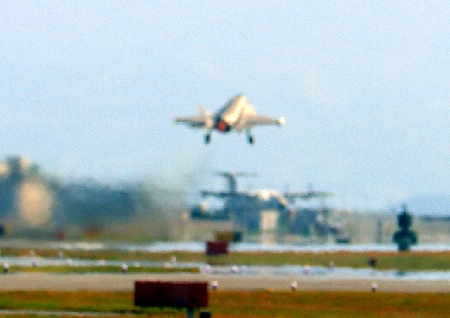 米海兵隊 F-35B ライトニングⅡ 戦闘機(岩国基地)、DT、32番機が離陸 |