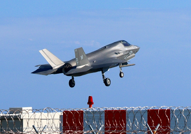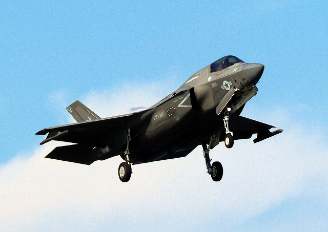 米海兵隊 F-35B ライトニングⅡ 戦闘機(岩国基地)、DT、32番機が着陸 |