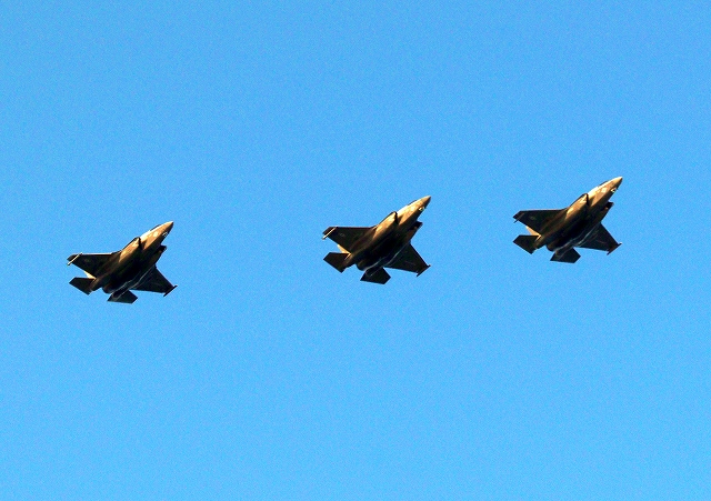 米海兵隊 F-35B ライトニングⅡ 戦闘機(岩国基地)、DT、21番機、27番機、29番機が3機編隊で帰還 |