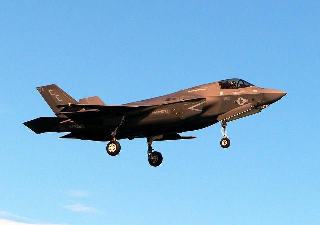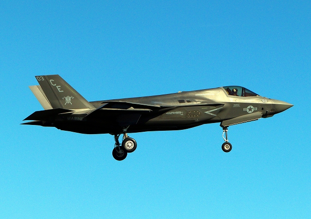 米海兵隊 F-35B ライトニングⅡ 戦闘機(岩国基地)、CE、03番機が着陸 |