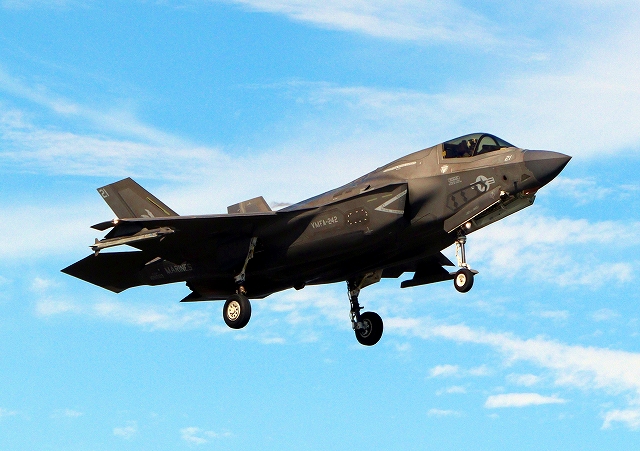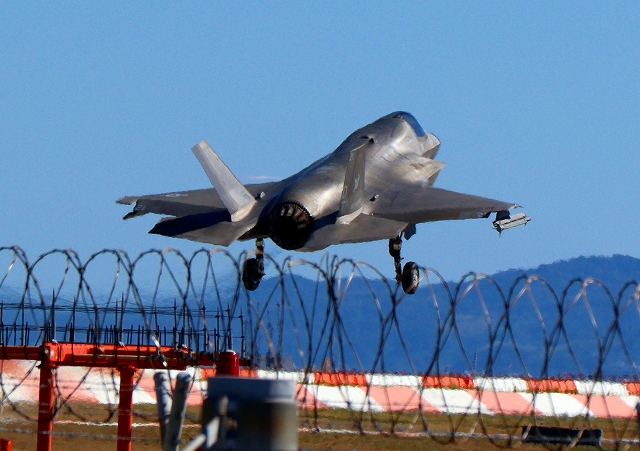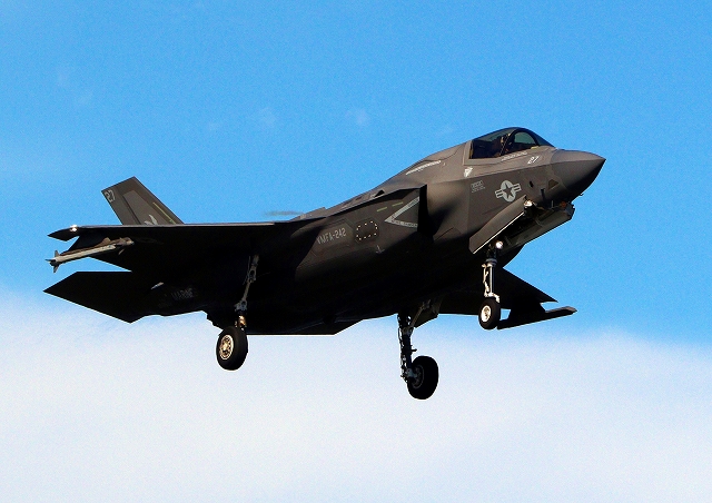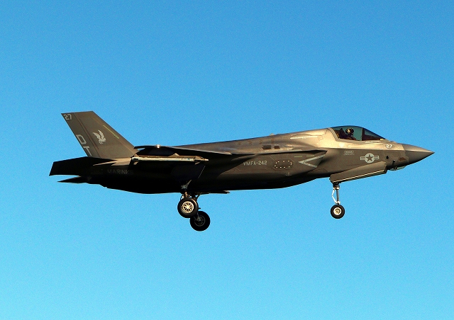 米海兵隊 F-35B ライトニングⅡ 戦闘機(岩国基地)、DT、27番機が着陸 |
