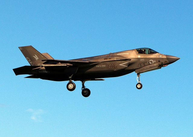 米海兵隊 F-35B ライトニングⅡ 戦闘機(岩国基地)、DT、21番機が着陸 |