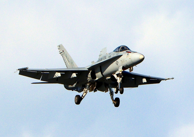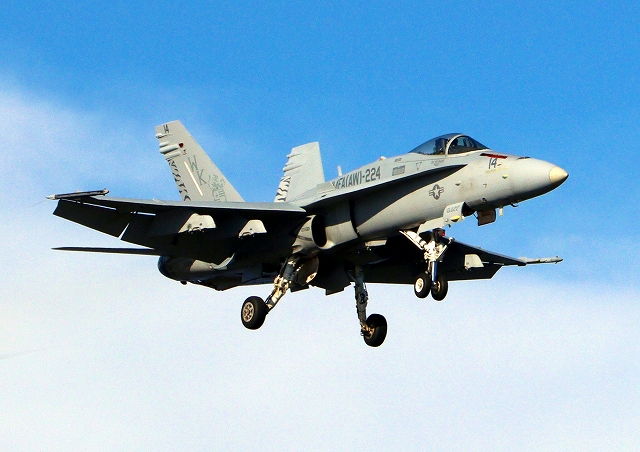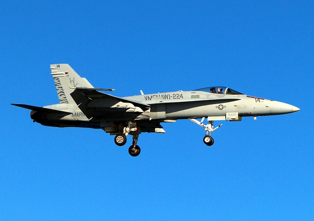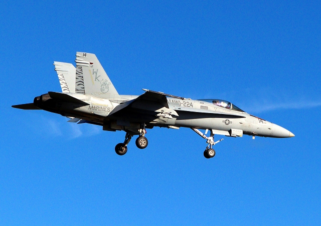 米海兵隊 F/A-18C ホーネット 戦闘攻撃機(岩国基地)、WK、14番機が着陸