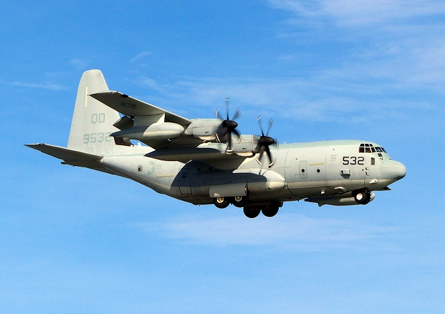米海兵隊 KC-130J 空中給油機 スーパーハーキュリーズ(岩国基地)、QD 9532番機 |
