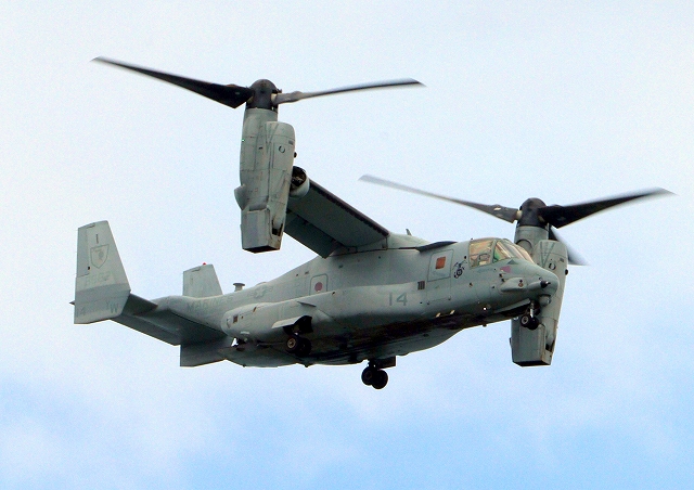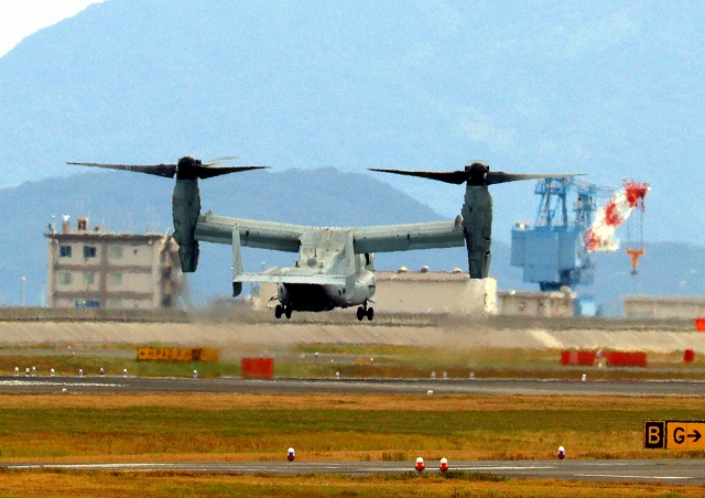 米海兵隊 MV-22B オスプレイ、YW、14番機が着陸 |