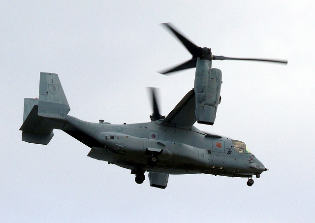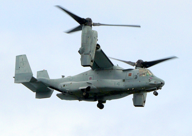米海兵隊 MV-22B オスプレイ、YW、14番機が飛来。強襲揚陸艦ボクサー搭載の機 |