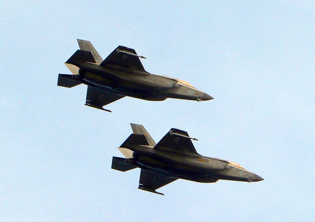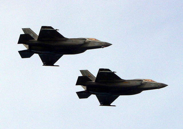 米海兵隊 F-35B ライトニングⅡ 戦闘機(岩国基地)、DT、元01番機、25番機が2機編隊で帰還 |